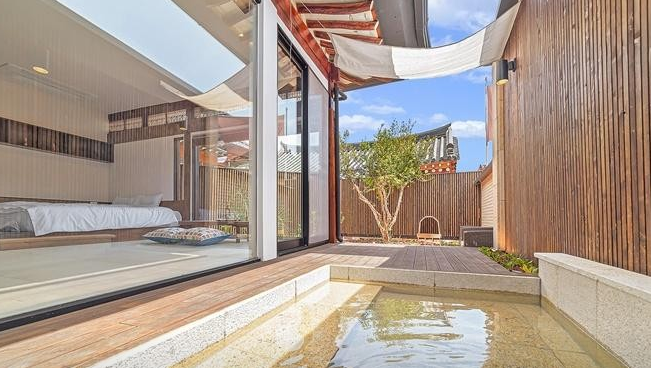 '소소정'은 전통적인 한옥의 아름다움과 현대적인 편의 시설이 조화를 이루는 곳입니다. 숙소는 본채, 별채, 사랑채, 안채 등 다양한 객실로 구성되어 있으며, 각 객실마다 실내 자쿠지나 노천탕이 마련되어 있어 프라이빗한 스파를 즐기실 수 있습니다.
