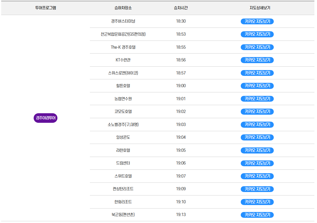- 종료 : 월정교에서 투어 종료 후 동궁과월지 주차장에서 하차