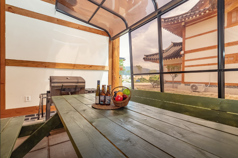 바비큐 시설은 일반 객실과 독채 객실에서 추가 요금으로 이용하실 수 있으며, 영유아는 객실 기준 인원에 포함되며 추가 인원이 있는 경우 추가 요금이 발생합니다. 주변 관광지로는 황리단길, 첨성대, 경주 교촌 전통마을, 동궁과 월지 등이 있어 관광하기에 편리한 위치에 있습니다.