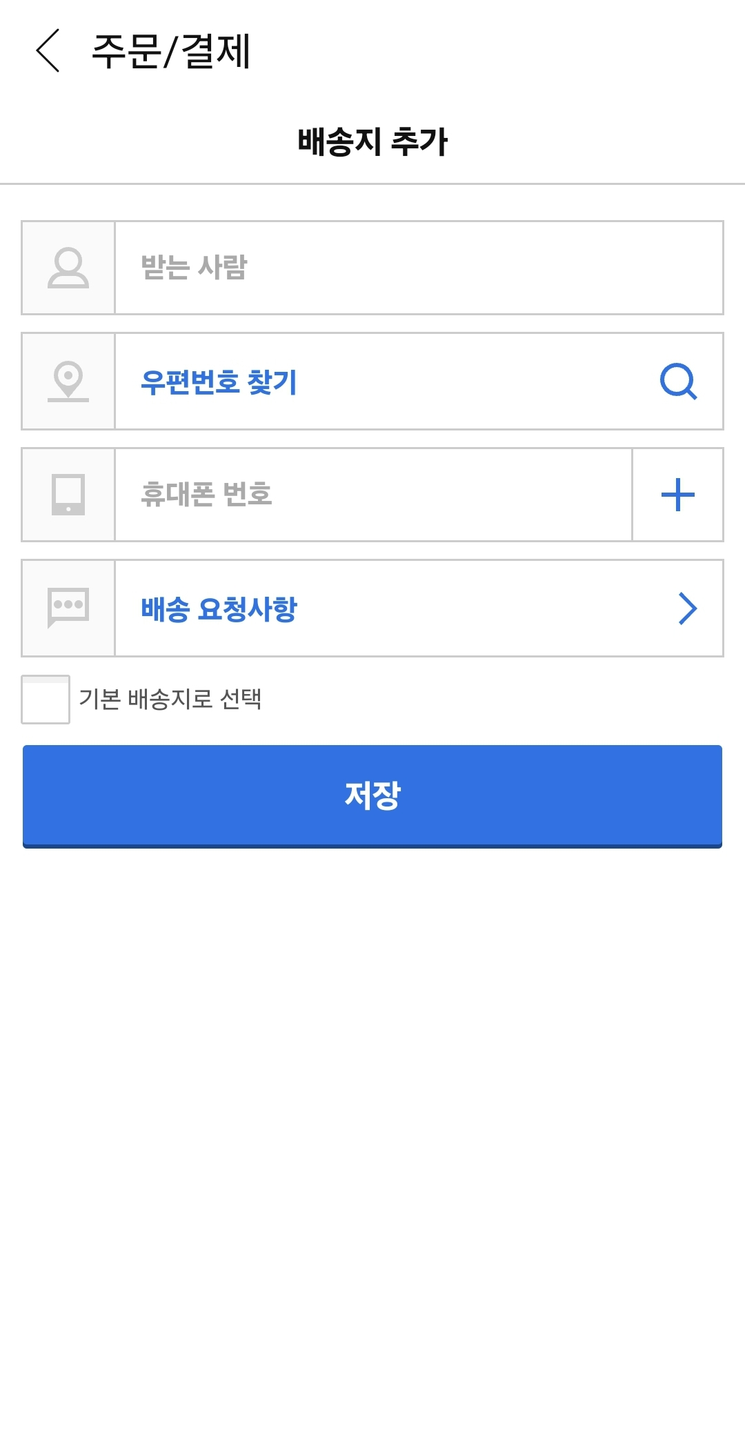 처음 주문하는 경우 배송지 정보를 입력해야 합니다.