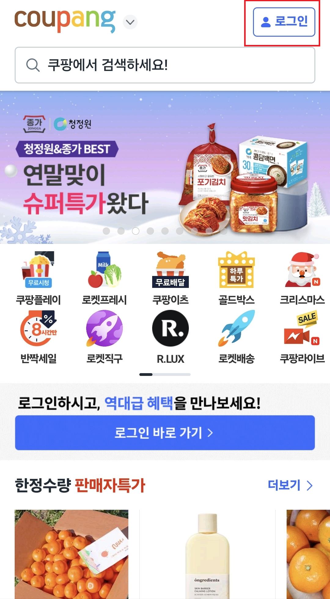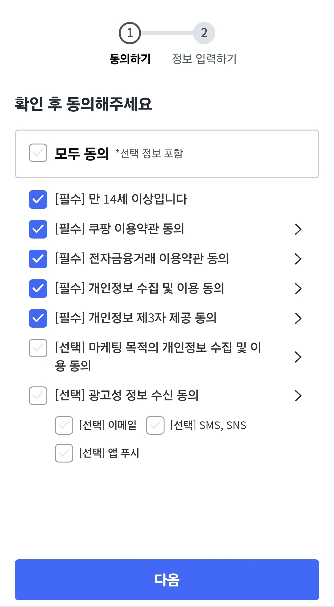 쿠팡 앱을 실행하면 회원가입이 필요합니다.