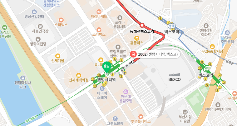 - 부산 출발: 1002번 버스(해운대~노포역~용당(차고지)) 탑승