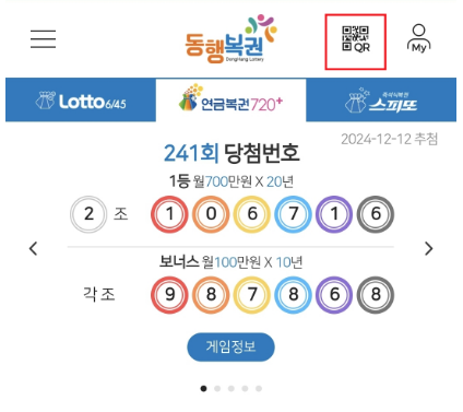 ② 동행복권 앱의 QR코드 확인 기능