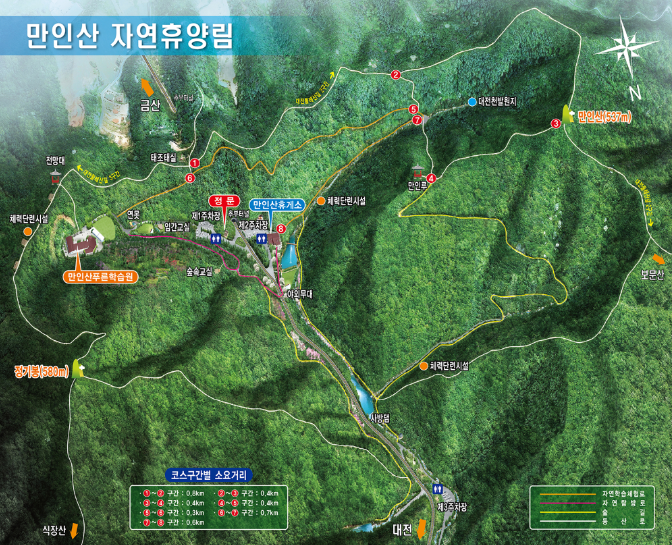 만인산자연휴양림은 다양한 난이도의 등산로를 갖추고 있어 초보자부터 숙련자까지 모두 즐길 수 있습니다. 특히, 정상에서 바라보는 대전 시내의 전경은 일품이며, 사계절마다 다른 매력을 느낄 수 있습니다. 가을 단풍철에는 더욱 아름다운 풍경을 자랑하니 놓치지 마세요!
