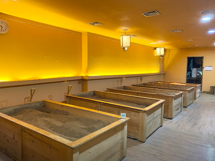 - 효소찜질 중에는 따뜻한 열감과 함께 몸이 이완되며, 긴장이 풀리고 스트레스가 완화됩니다.