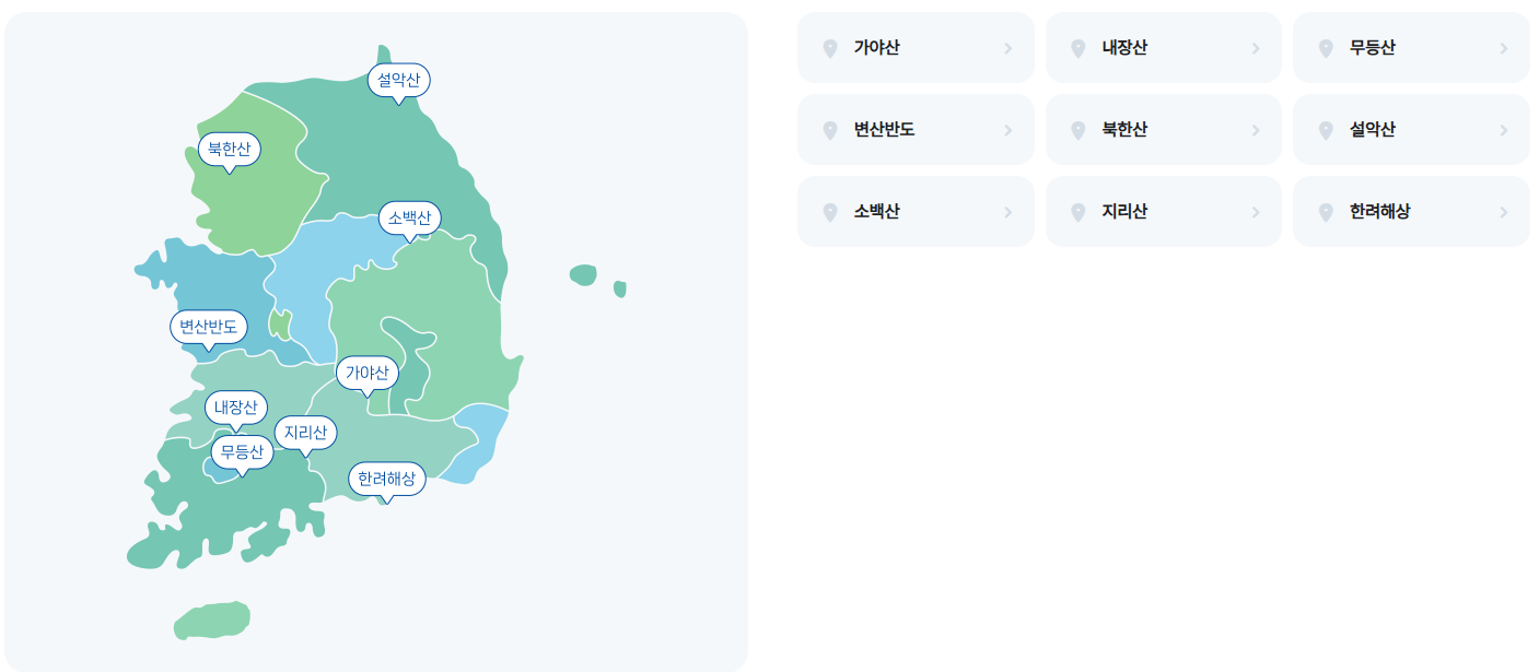 자신이 방문하고자 하는 생태탐방원의 위치를 선택합니다. (예: 북한산, 설악산 등)