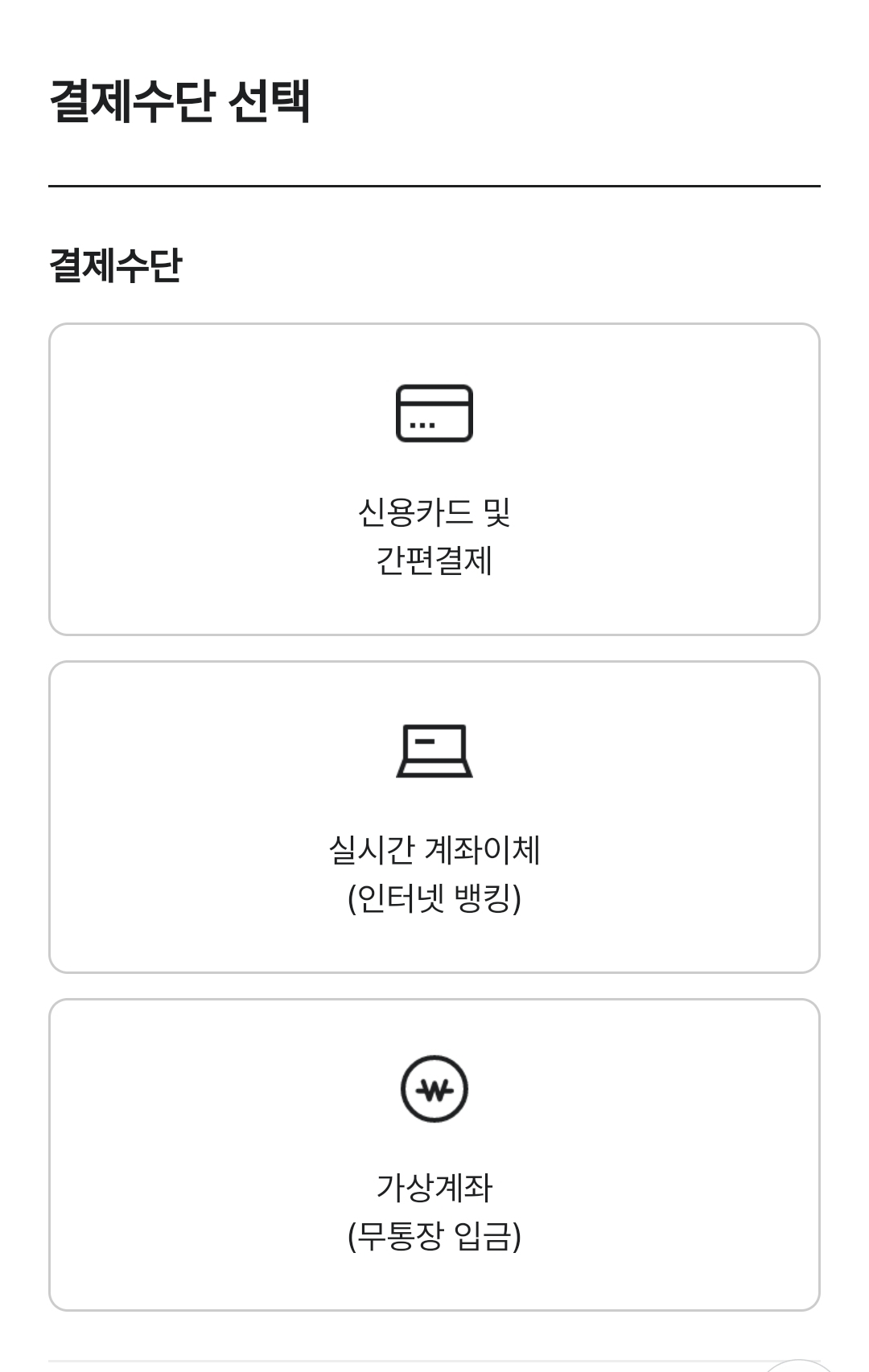 원하는 결제 방식을 선택하고 결제를 완료합니다.