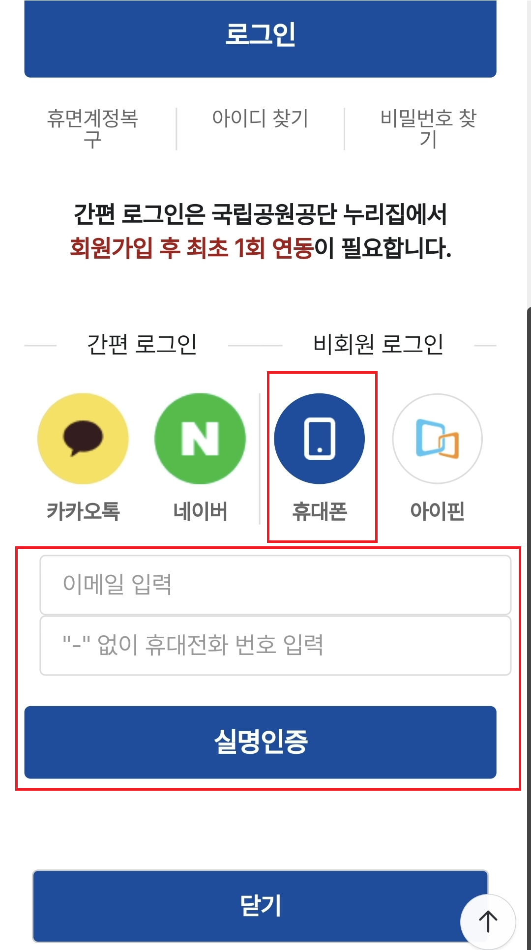 - 비회원 로그인