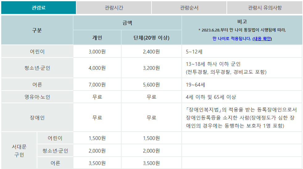비용 : 만 19세 이하 무료 / 성인 2,000원