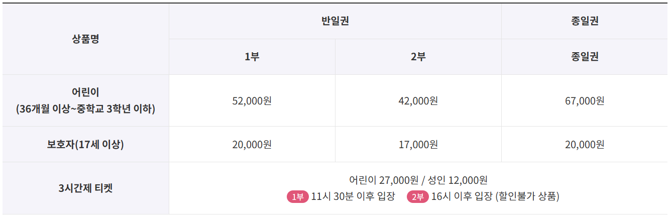 예약방법 : 공식 홈페이지 또는 현장 구매