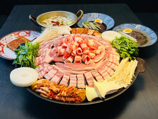 푸고 세종점은 솥뚜껑 위에서 구워 먹는 돼지고기 무한리필로 유명한 맛집입니다. 이곳에서는 삼겹살, 목살, 가브리살 등 9가지의 다양한 돼지고기 부위를 무제한으로 즐길 수 있으며, 즉석에서 만들어 먹는 떡볶이와 라면, 볶음밥, 그리고 아이스크림 등 디저트까지 제공하여 남녀노소 모두에게 인기를 끌고 있습니다. 넓고 깔끔한 매장 내부는 단체 모임이나 가족 외식에 적합하며, 셀프바를 통해 신선한 재료를 자유롭게 선택할 수 있어 각자의 취향에 맞는 식사를 즐길 수 있습니다. 합리적인 가격에 다양한 메뉴를 무한리필로 제공하는 푸고 세종점은 가성비 좋은 외식 장소로 손꼽히고 있습니다.