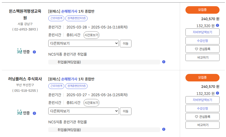 - 검색 결과에서 본인에게 적합한 교육 기관을 선택합니다.
