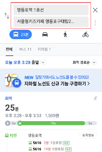 버스와 지하철 노선, 환승 정보, 소요 시간까지