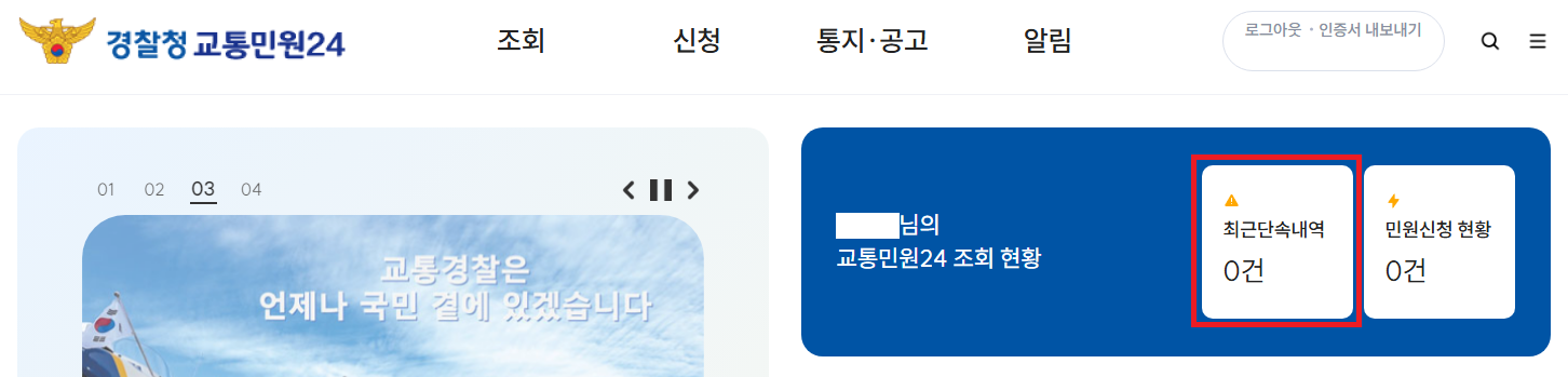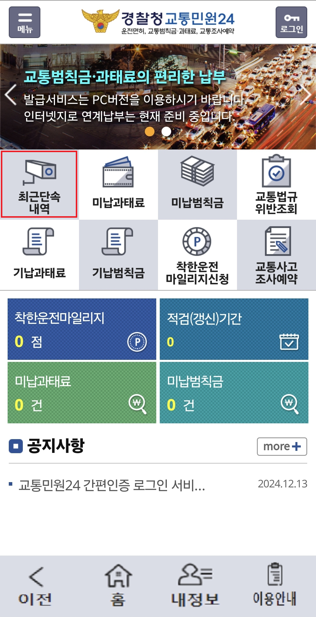 Step 3. 최근단속내역 메뉴를 선택하여 위반 내역 확인합니다.