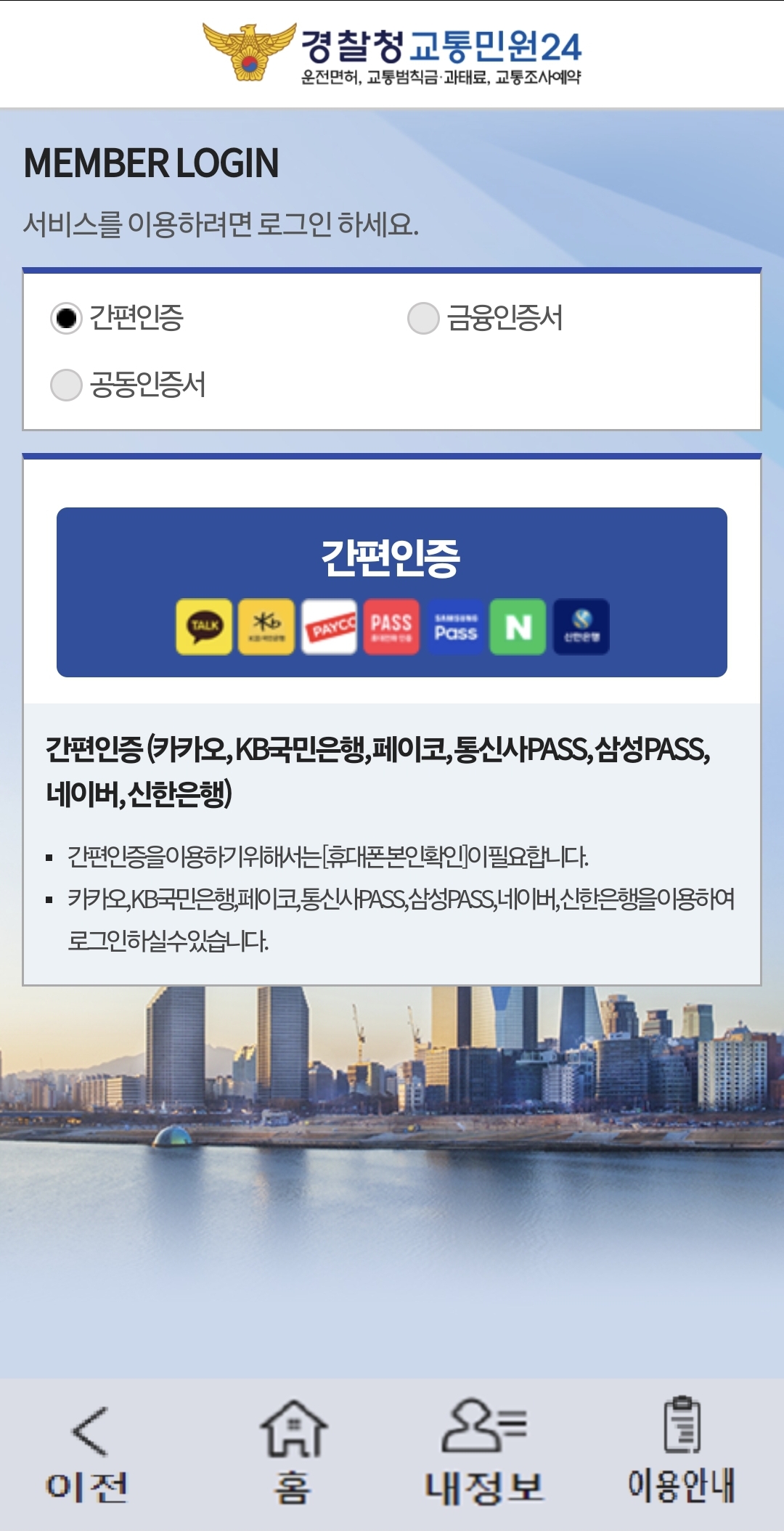 📌 주요 기능: 교통법규 위반 내역 조회, 과태료 및 범칙금 납부, 이의 신청 등