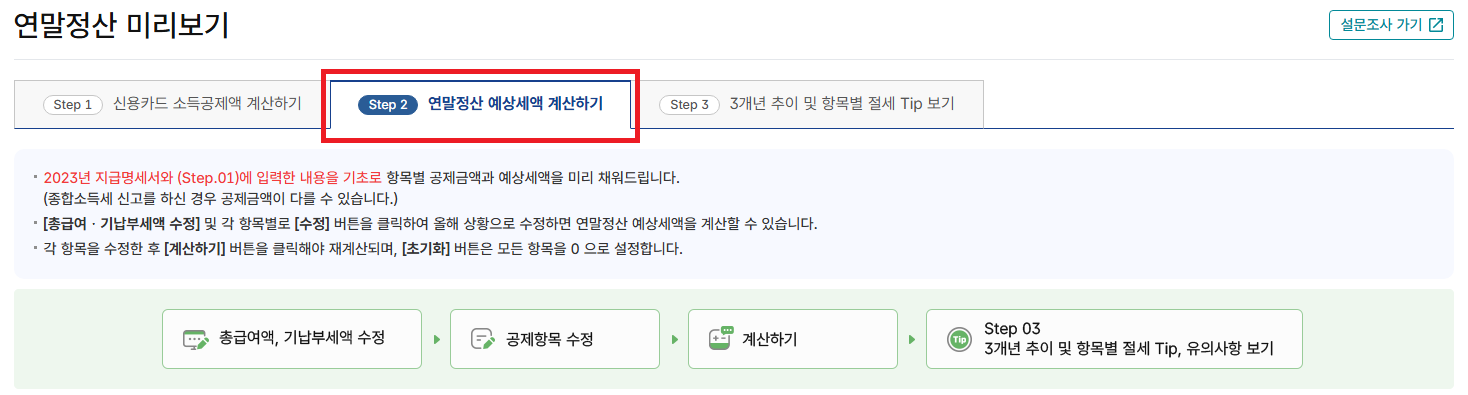 (Step 2: 연말정산 예상 세액 계산하기)