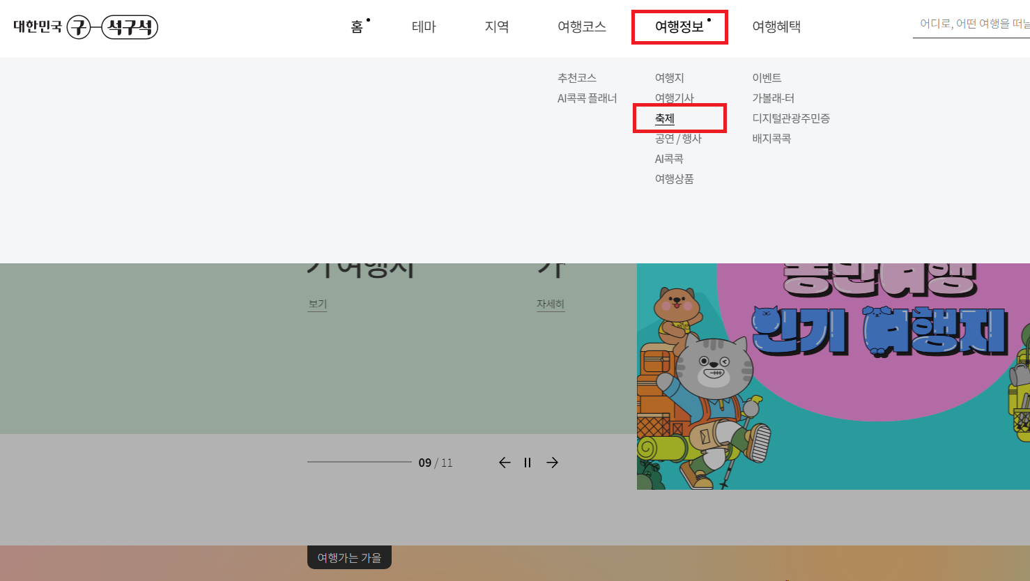 - 여행 정보 > 축제 클릭