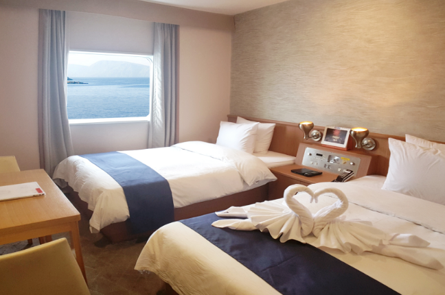 - 승선: 안내에 따라 승선하여 지정된 객실로 이동합니다.