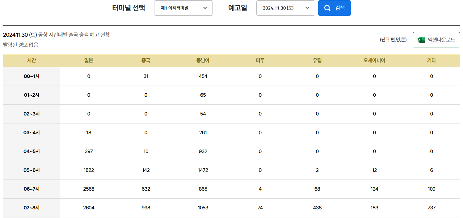 공항의 혼잡 상황을 알면 경유나 항공편 연결 시 여유 시간을 더 확보할 수 있습니다.