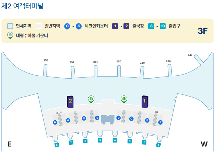 체크인 위치: 제 2 여객터미널 3층 C, D, E, F, G 카운터