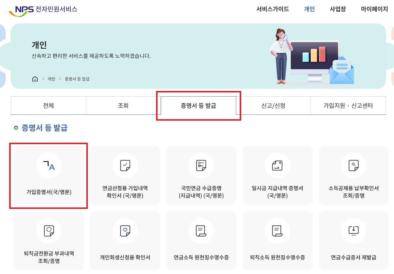 1. 국민연금 가입증명서 발급