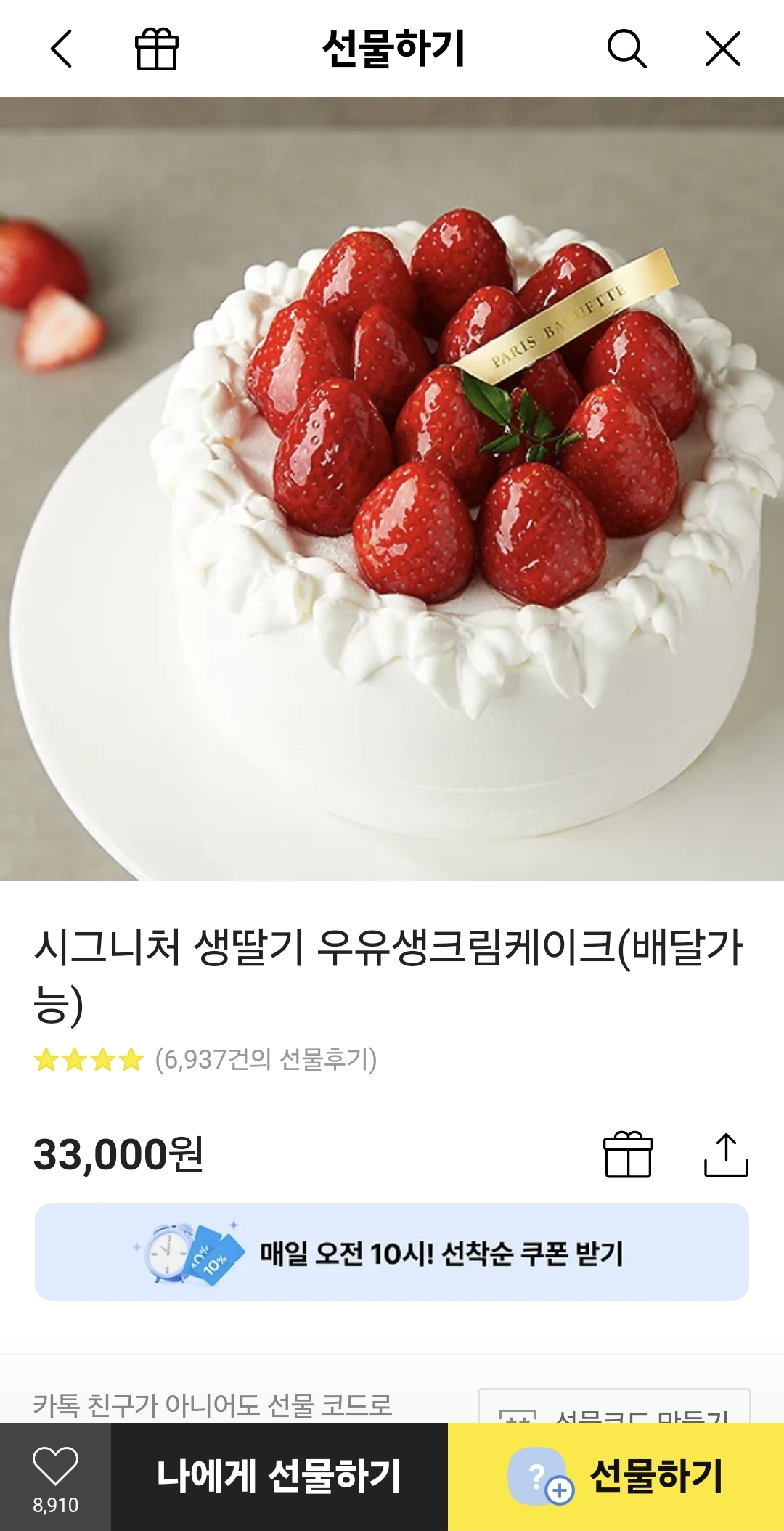 특별한 날, 가까이 있지 않아도 손쉽게 소중한 마음을 전할 수 있는 방법이 있다면 얼마나 좋을까요? 카카오톡 선물하기는 클릭 몇 번으로 생일, 기념일, 연말 축하 등 다양한 순간에 소중한 사람들에게 달콤한 케이크를 선물할 수 있는 간편한 기능입니다. 선물을 받은 사람은 모바일 교환권을 통해 가까운 매장에서 자신이 원하는 시간에 편리하게 수령할 수 있어 시간과 공간의 제약 없이 실용적이고 스마트한 선물이 가능합니다. 이제 카카오톡 선물하기로 일상 속 특별한 순간들을 더욱 빛내보세요!