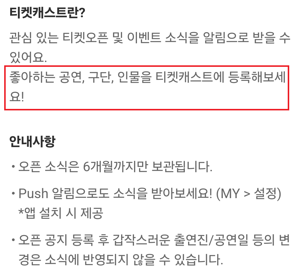 - 이제 티켓 오픈 일정이 확정될 때마다 알림을 받을 수 있습니다!