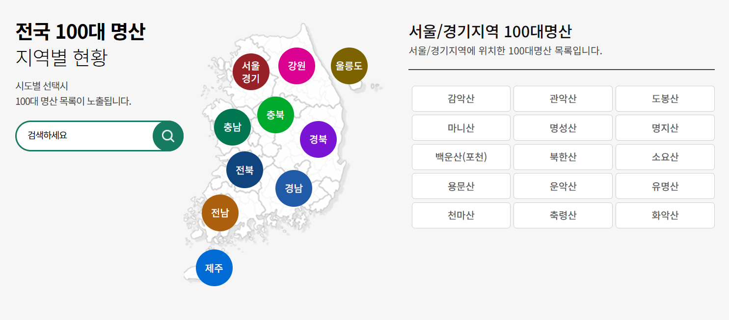 하지만 전국에 흩어진 100대 명산의 위치를 한눈에 보고, 어디부터 가야 할지 계획하려면 정확한 지도가 필요하죠.