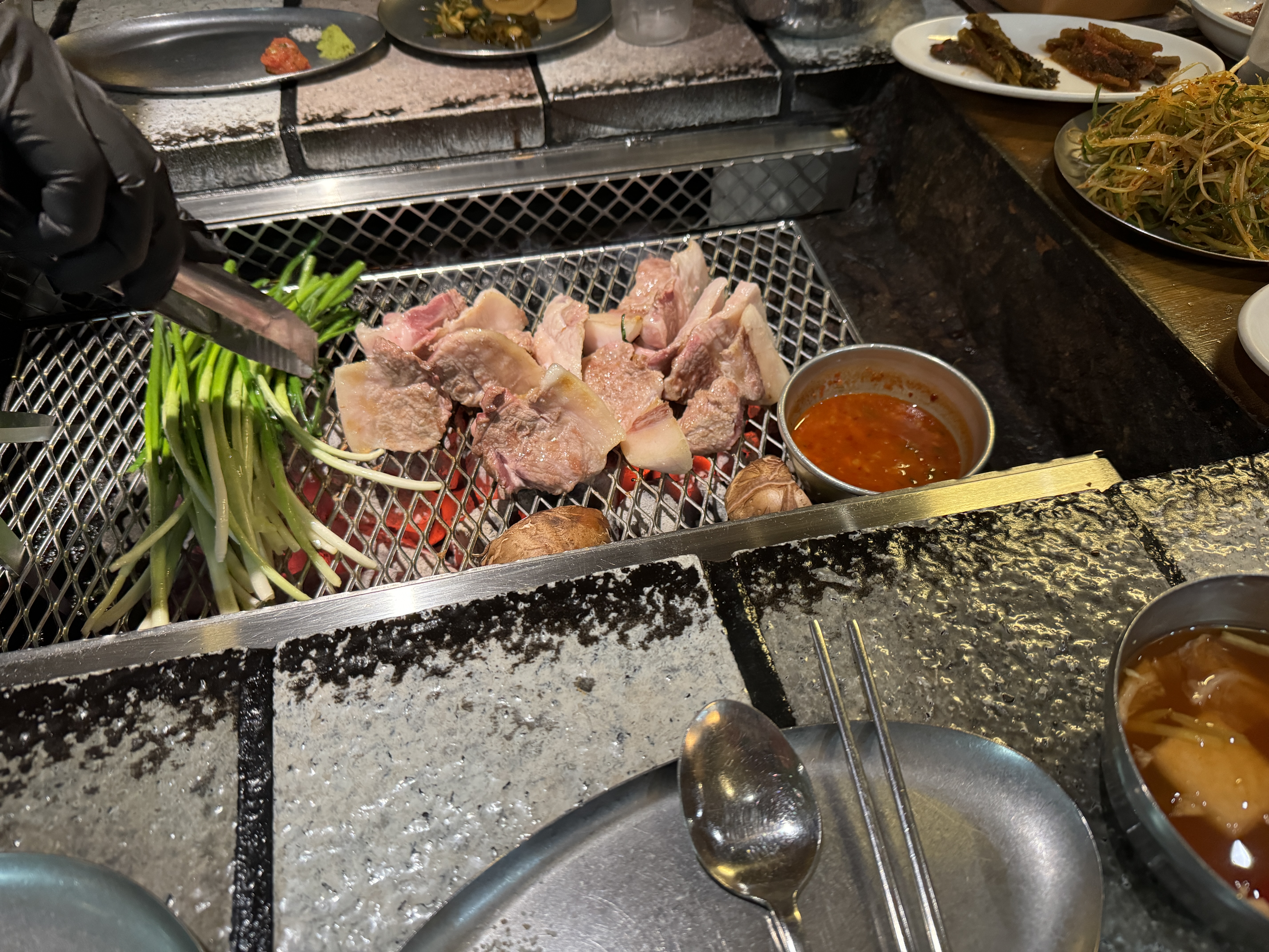 여기, 고기만 굽는 게 아니에요. 쪽.파.도 같이 구워줍니다. 👀