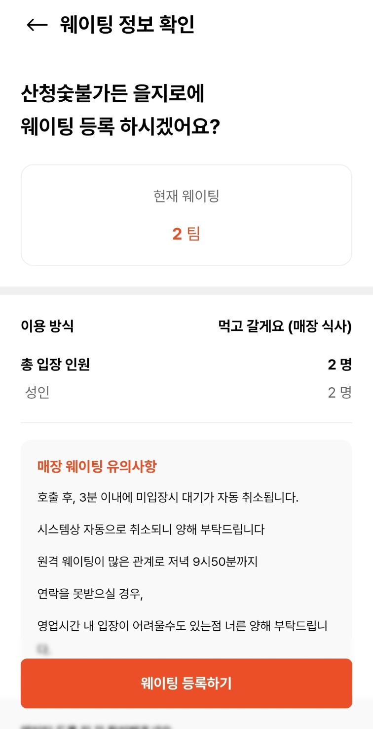 타이밍이 중요합니다! - 2명 이상이 함께 웨이팅 등록하는 걸 추천